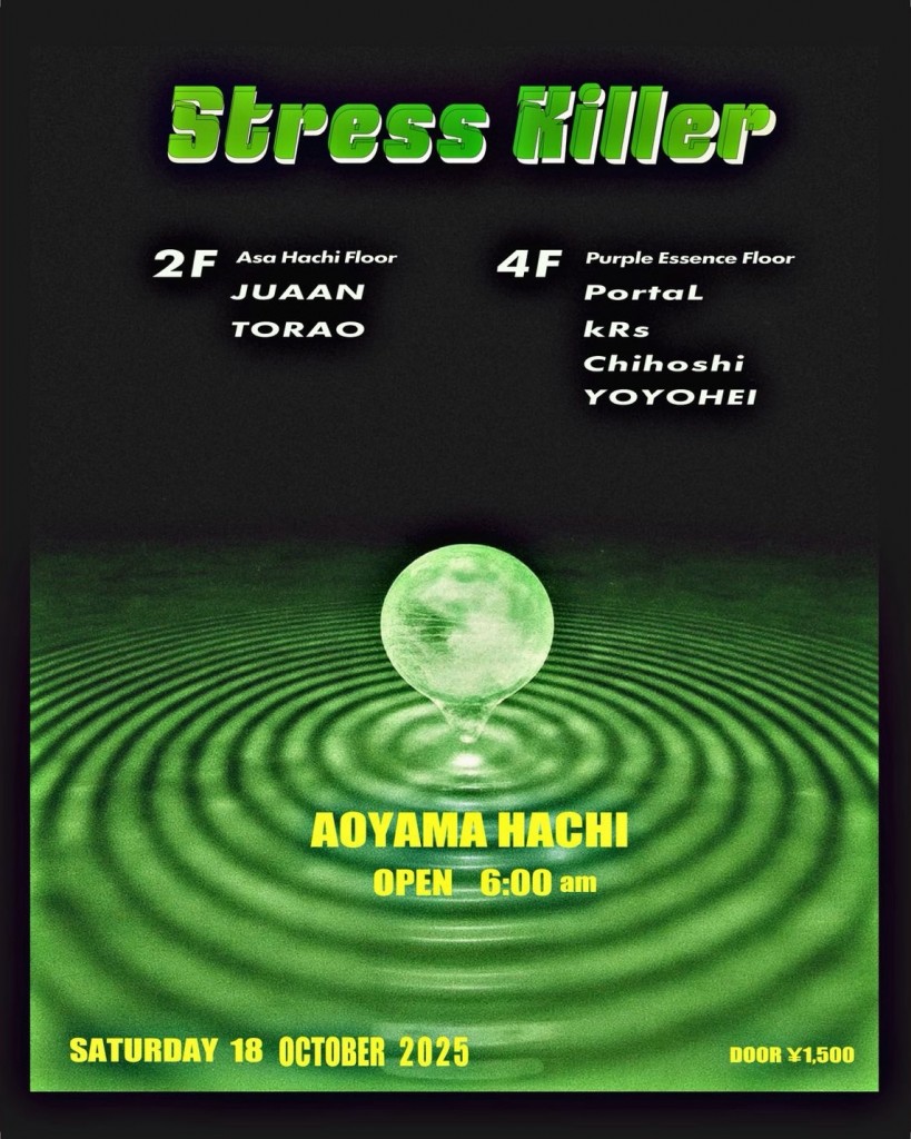 2025.10.18 Sat Stress Killer Stress Killer HOUSETECHNOOTHER DATE: 2025.10.18 Sat 06:00 DOOR: ¥1500 -2F- ■DJ JUAAN TORAO -4F- ■DJ PorTaL kRs Chihoshi YOYOHEI