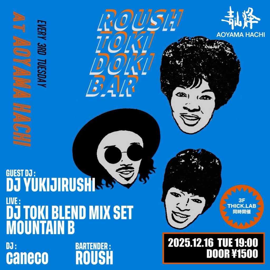 2025.12.16 Tue ROUSH TOKI DOKI BAR ROUSH TOKI DOKI BAR HIPHOP DATE: 2025.12.16 Tue 19:00 DOOR: ¥1000 -2F- ■GUEST DJ DJ YUKIJIRUSHI ■LIVE DJ TOKI BLEND MIX SET MOUNTAIN B ■DJ caneco ■BARTENDER ROUSH