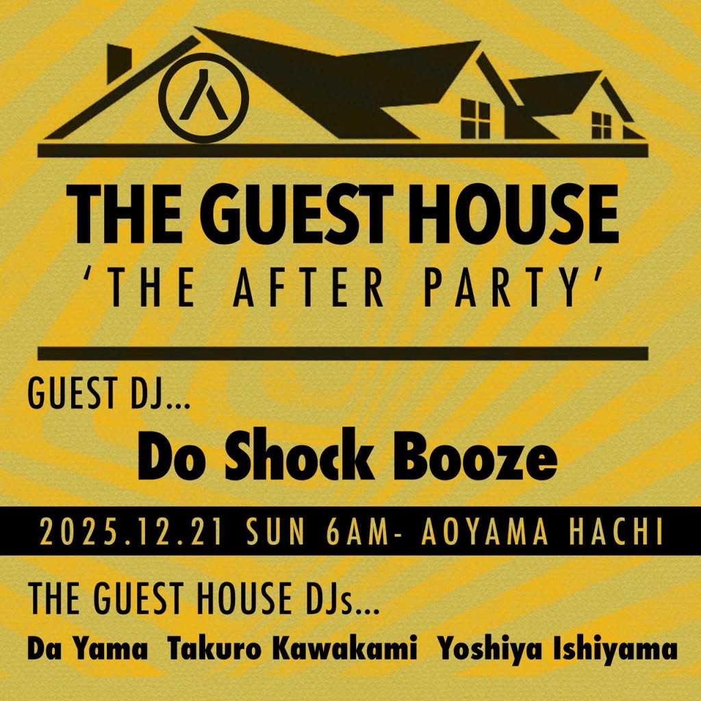 THE GUEST HOUSEメンバーのバックボーンはバラバラなもののそれぞれの個性を認め合い、パーティーカルチャーが持つ魅力に対して尊敬の念を持ち自分たちの在り方を問う姿勢を共有しながら、青山蜂でのレギュラーアフターパーティーを中心に各所に影響を蔓延さ