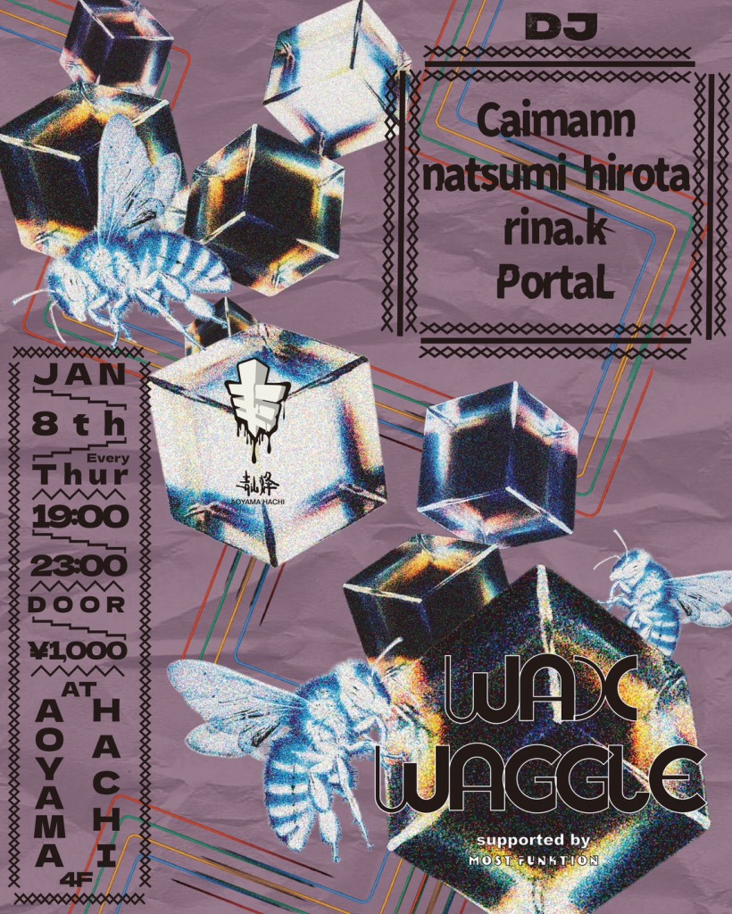 2026.01.08 Thu WAX WAGGLE WAX WAGGLE HOUSETECHNO DATE: 2026.01.08 Thu 19:00 DOOR: ¥1000 ■4F DJ Cainmann natsumi hirota rina.k PortaL