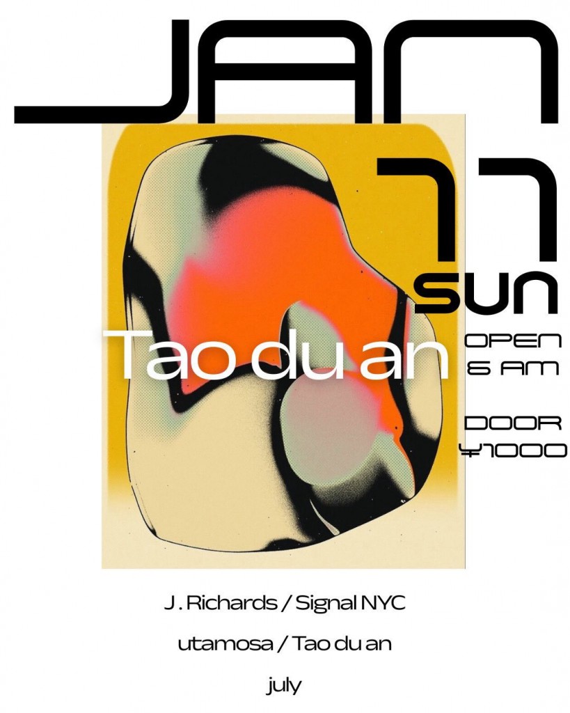2026.01.11 Sun Tao du an Tao du an HOUSETECHNO DATE: 2026.01.11 Sun 06:00 DOOR: ¥1000 J.Richards(signalNYC) utamosa(Tao du an) july