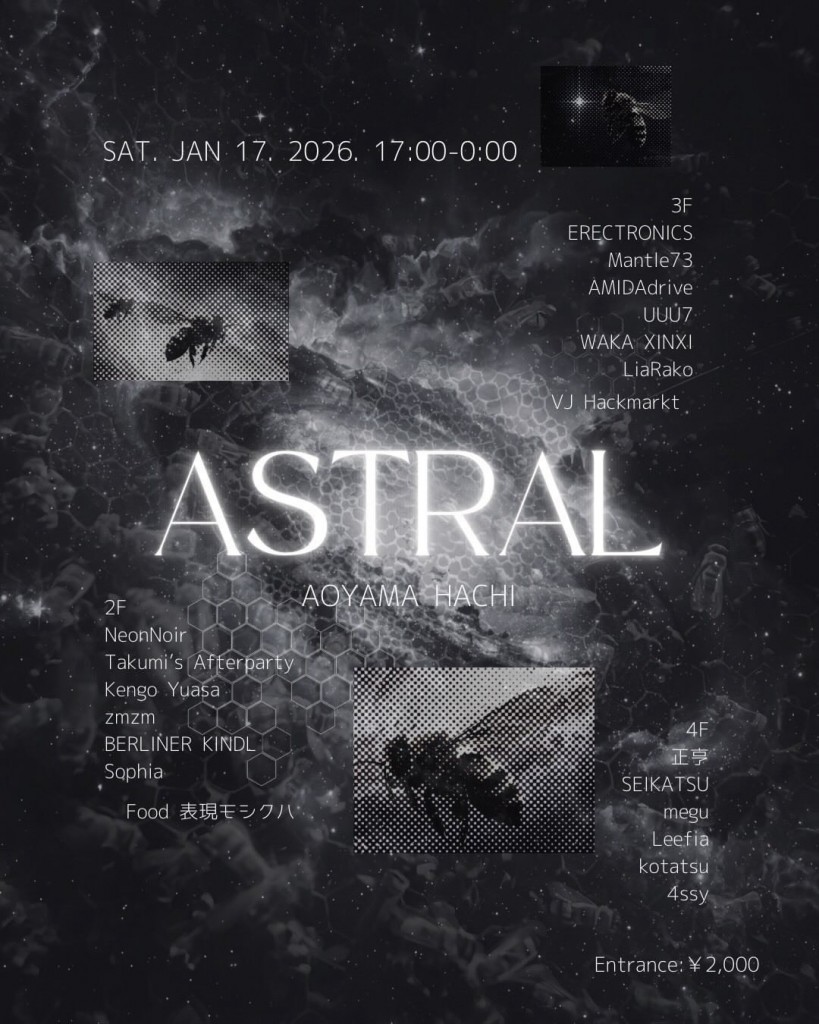 今回はWAKA XINXI @wakaxinxi、LiaRako @lia_rako と共に、野外の感覚を内包したパーティー"Drowned"主宰の ERECTRONICS @tmy_erectronics がオーガナイザーとして加わる。