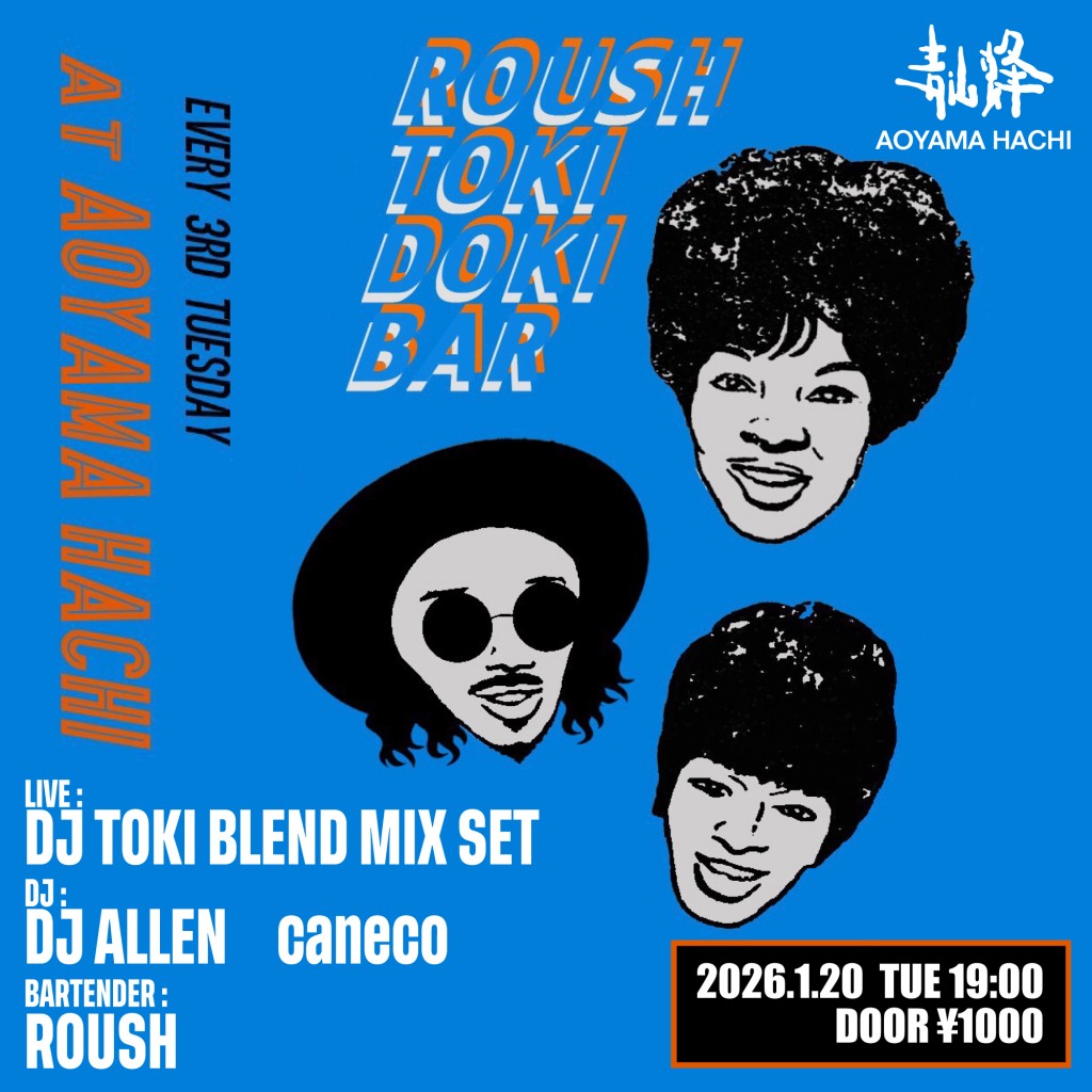 2026.01.20 Tue ROUSH TOKI DOKI BAR ROUSH TOKI DOKI BAR HIPHOP DATE: 2026.01.20 Tue 19:00 DOOR: ¥1000 -2F- ■LIVE DJ TOKI BLEND MIX SET ■DJ DJ ALLEN caneco ■BARTENDER ROUSH
