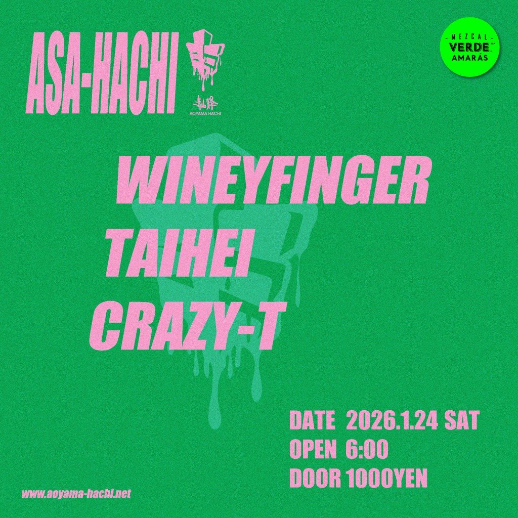 2026.01.24 Sat Asa-Hachi Asa-Hachi HOUSETECHNO DATE: 2026.01.24 Sat 06:00 DOOR: ¥1000 WINEYFINGER TAIHEI CRAZY-T