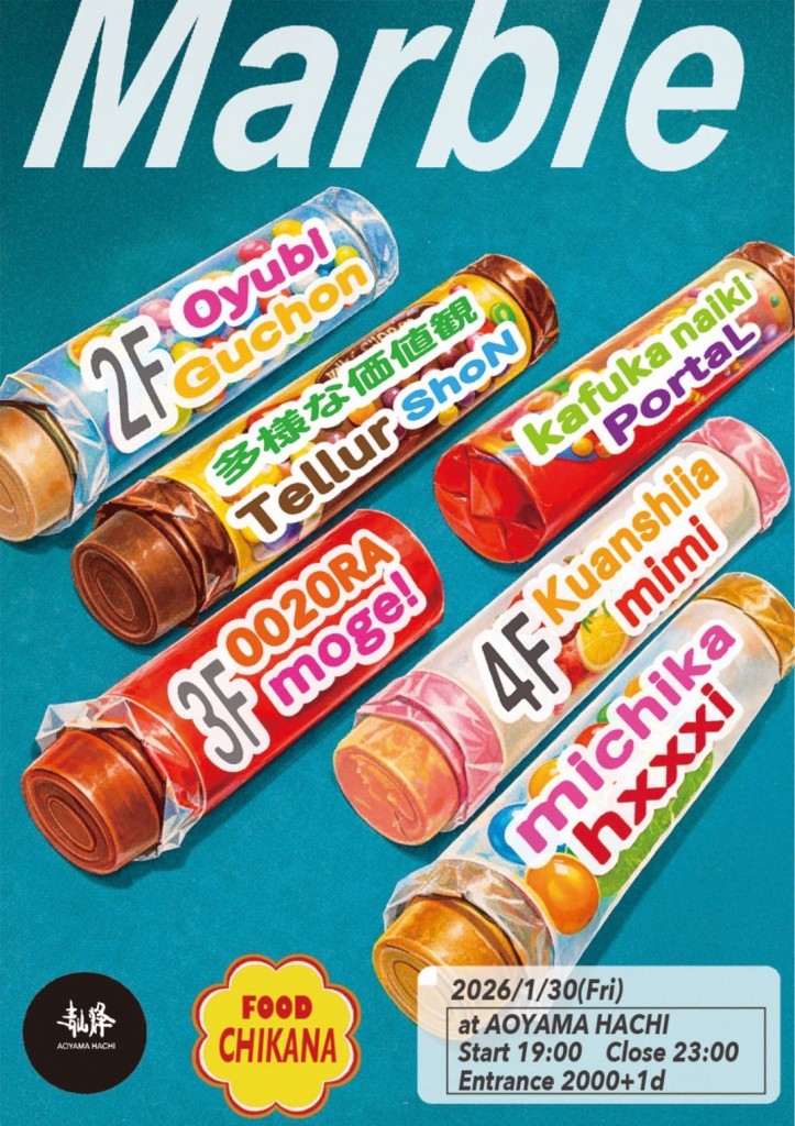 1月30日、三つのフロア、2階はShoN、3階はPortaL、4階はteddyによるオーガナイズで各フロアの三つの温度が織り成す形でJUKE、Footwork、Bass、Dub、Techno、Lovers等のダンスミュージックが鳴り響く。