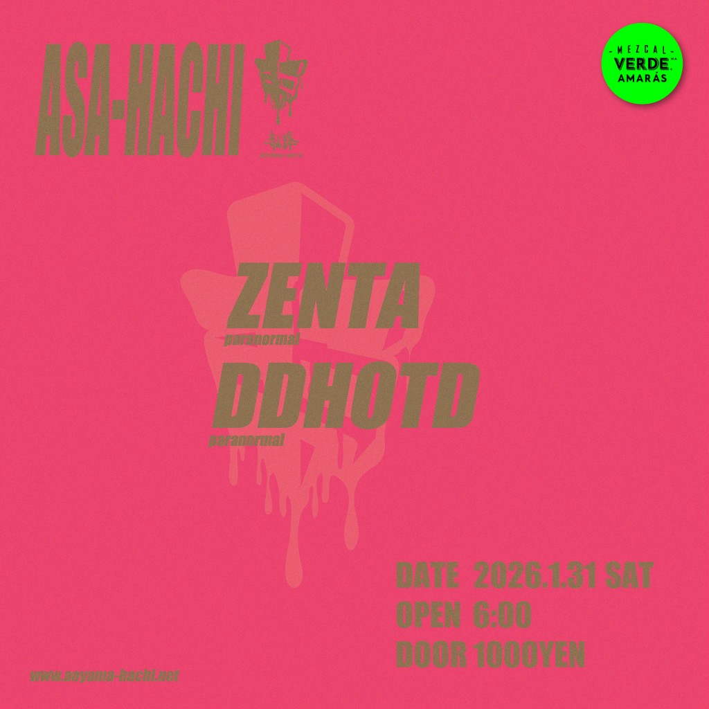 2026.01.31 Sat Asa-Hachi Asa-Hachi HOUSETECHNO DATE: 2026.01.31 Sat 06:00 DOOR: ¥1000 ZENTA (paranormal) DDHOTD (paranormal)