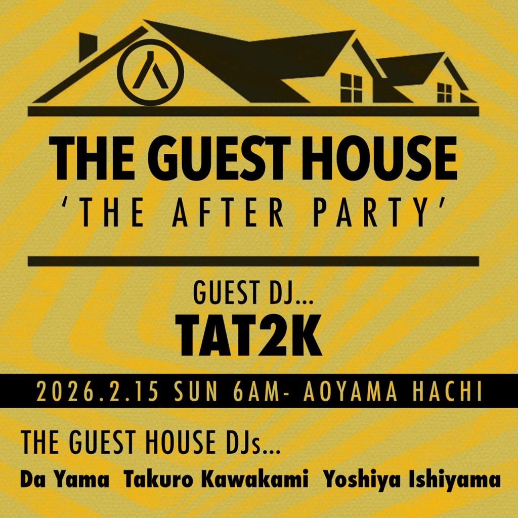 THE GUEST HOUSEメンバーのバックボーンはバラバラなもののそれぞれの個性を認め合い、パーティーカルチャーが持つ魅力に対して尊敬の念を持ち自分たちの在り方を問う姿勢を共有しながら、青山蜂でのレギュラーアフターパーティーを中心に各所に影響を蔓延さ