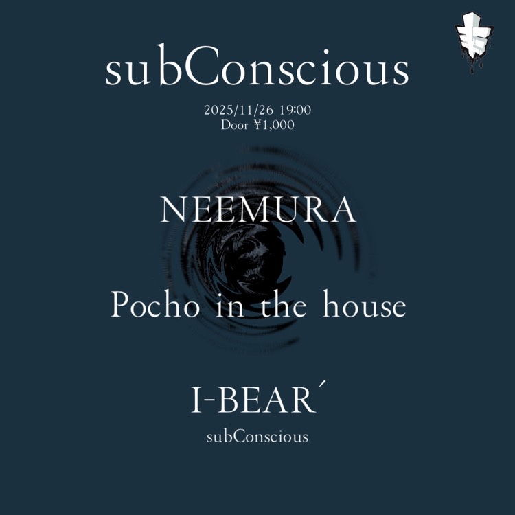2025.11.26 Wed subConscious subConscious HOUSE DATE: 2025.11.26 Wed 19:00 DOOR: ¥1000 ■Guest DJ NEEMURA Pocho in the house ■Resident DJ I-BEAR’ (subConscious)