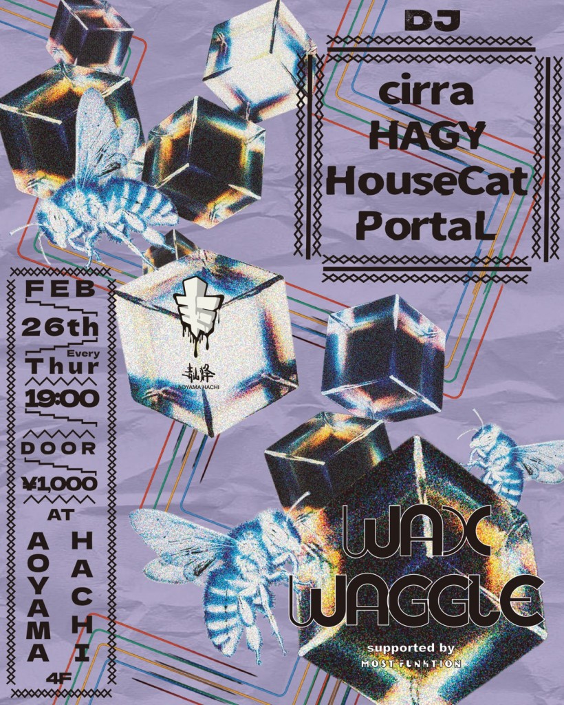 2026.02.26 Thu WAX WAGGLE WAX WAGGLE HOUSETECHNO DATE: 2026.02.26 Thu 19:00 DOOR: ¥1000 ■4F cirra HAGY HouseCat PortaL